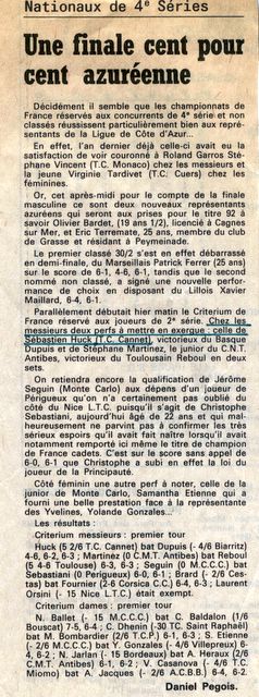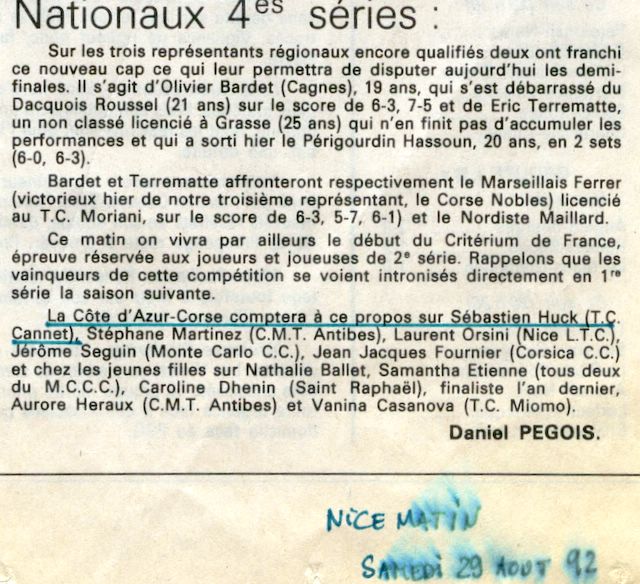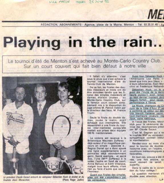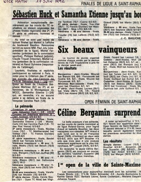 3ème aux Championnats de la ligue Côte d’Azur 2nde série. Victoires sur des joueurs classés 480, 530 et 630 ATP, classement mondial.